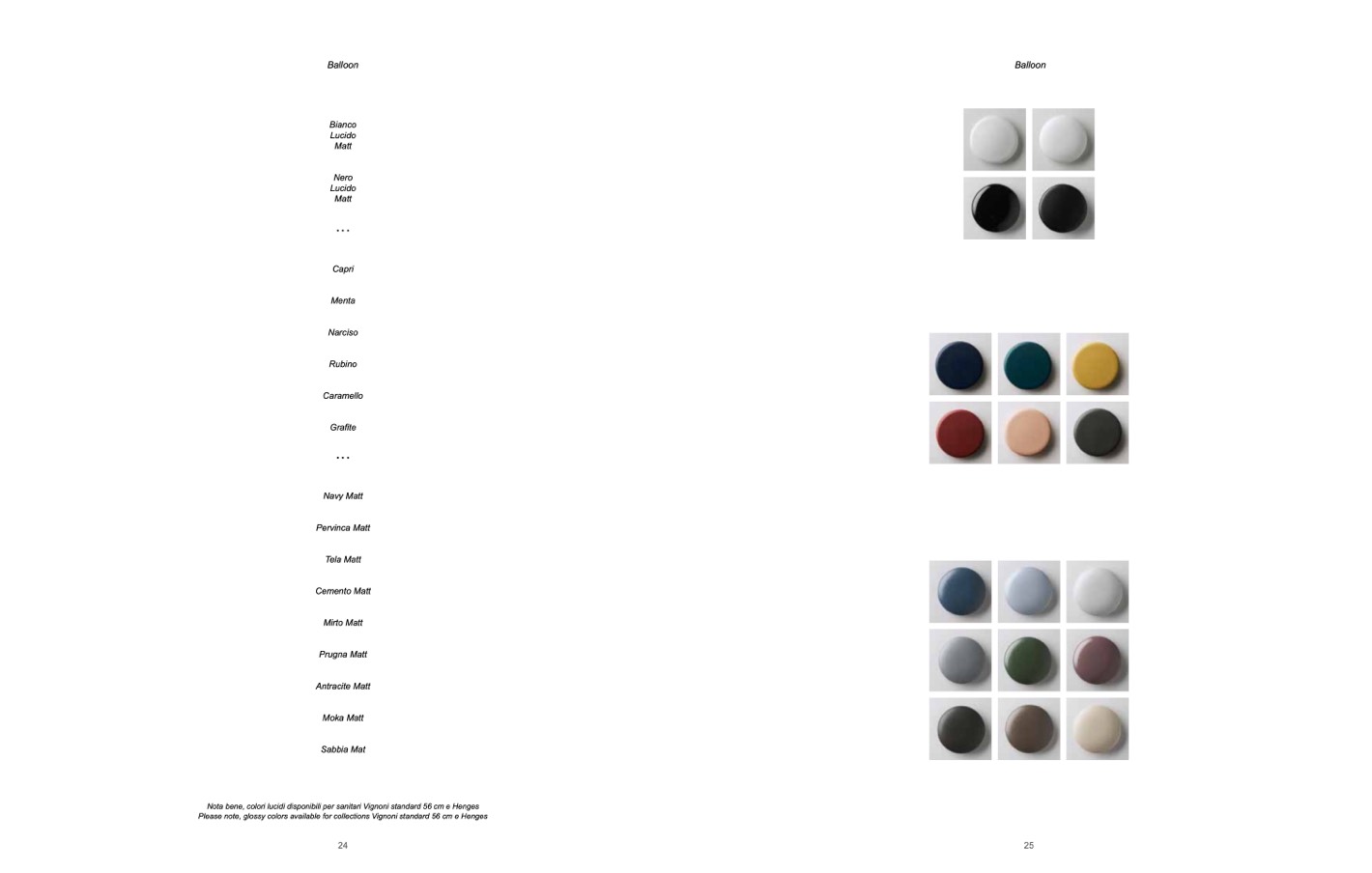 Please note, glossy colors available for collections Vignoni standard 56 cm e Henges