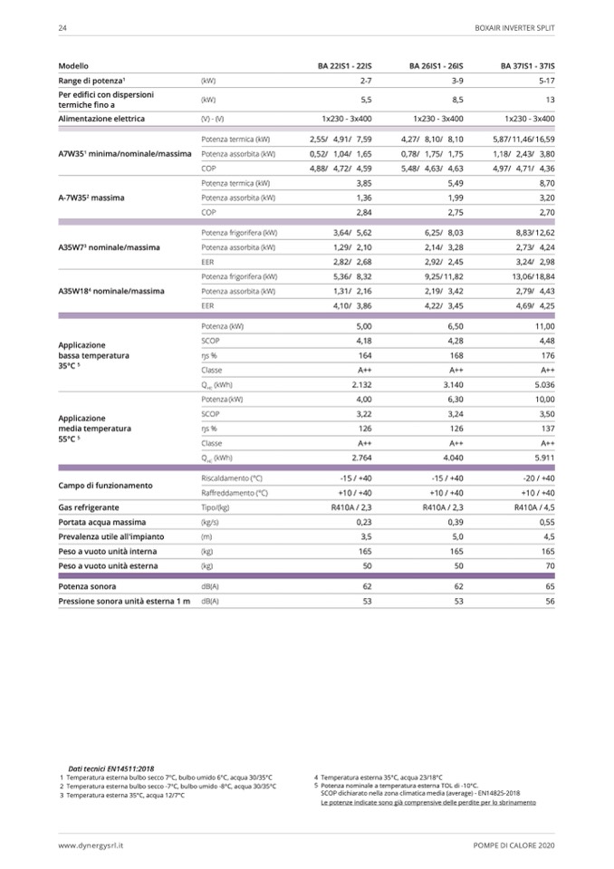 Le potenze indicate sono già comprensive delle perdite per lo sbrinamento