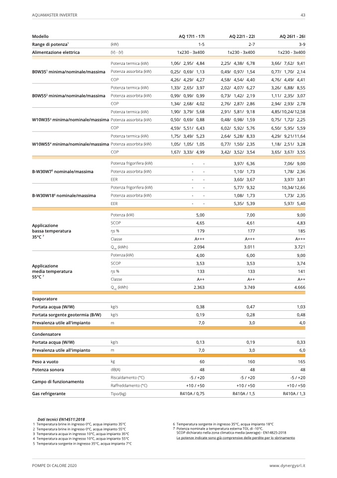 1 Temperatura brine in ingresso 0°C, acqua impianto 35°C