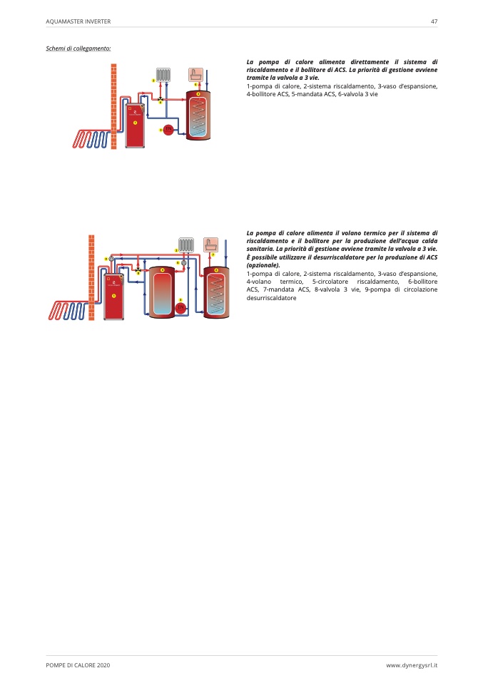 1-pompa di calore, 2-sistema riscaldamento, 3-vaso d’espansione,