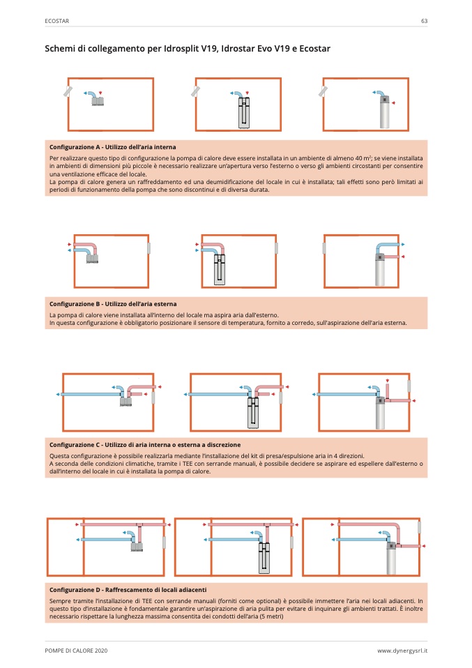Per realizzare questo tipo di configurazione la pompa di calore deve essere installata in un ambiente di almeno 40 m