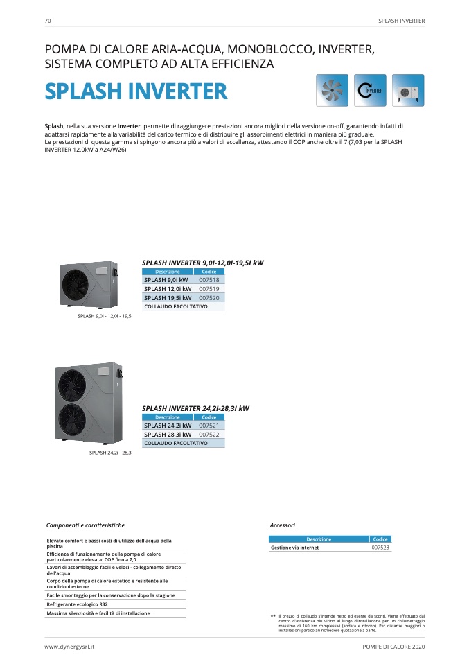 Splash, nella sua versione Inverter, permette di raggiungere prestazioni ancora migliori della versione on-off, garantendo infatti di