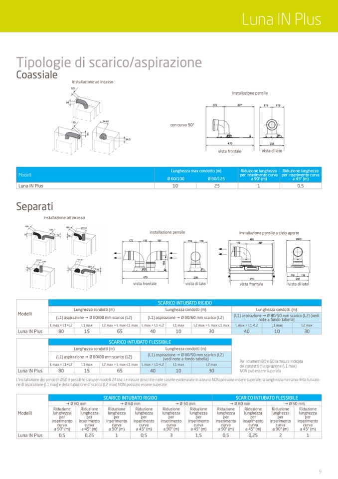 (L1) aspirazioneØ 80/80 mm scarico (L2)
