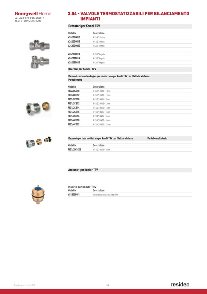 Raccordi con tenuta ad ogiva per tubo in rame per Kombi TRV con filettatura interna
