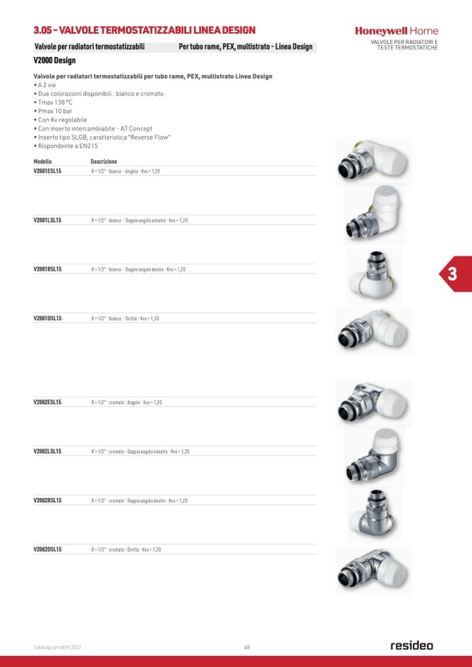 R = 1/2” - cromato - Doppio angolo destro - Kvs = 1,20