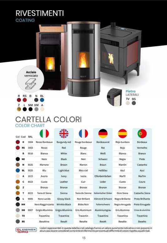 I colori rappresentati in questa tabella e nel catalogo hanno un valore puramente indicativo e non possono in
