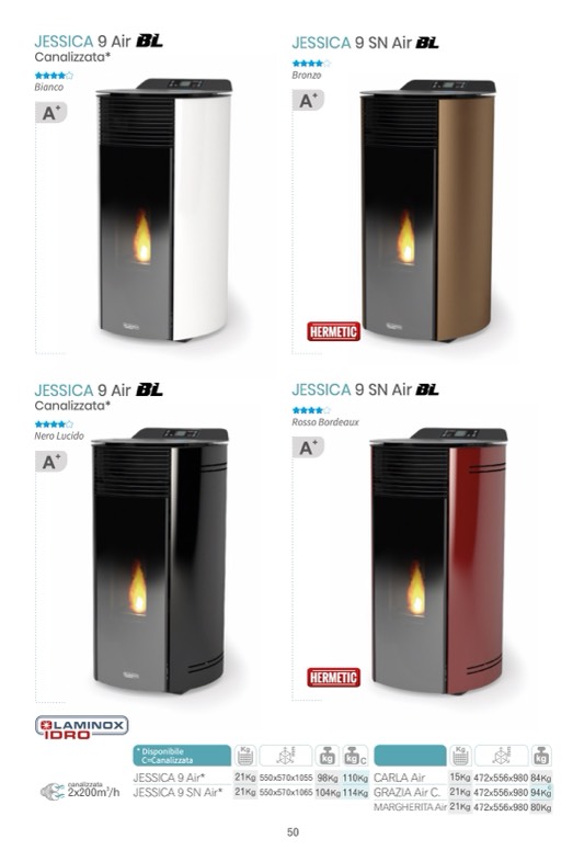 2x200m /h JESSICA 9 SN Air* 21Kg 550x570x1065 104Kg 114Kg GRAZIA Air C. 21Kg 472x556x980 94Kg