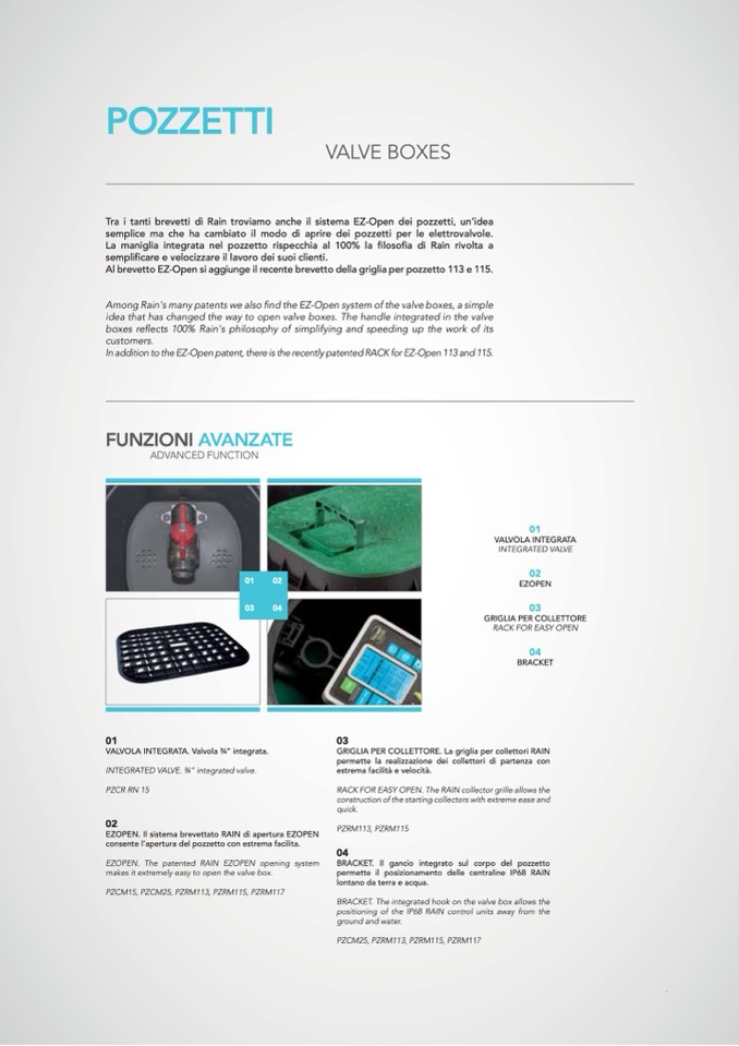 Among Rain's many patents we also find the EZ-Open system of the valve boxes, a simple