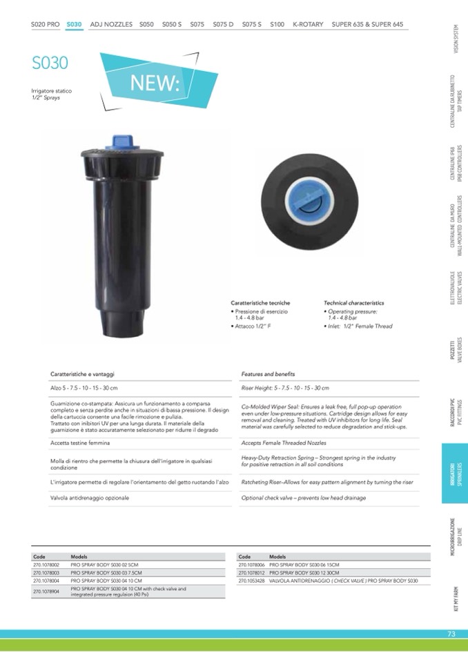 PRO SPRAY BODY S030 04 10 CM with check valve and