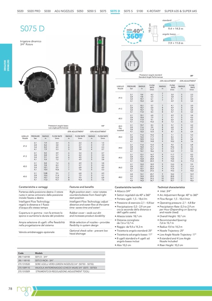 • Portata ugelli: 1,5 - 18,6 l/m