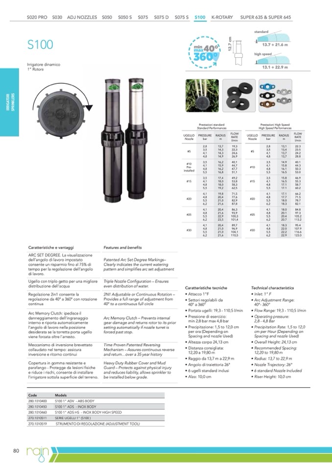 • Portata ugelli: 19,3 - 110,5 l/min