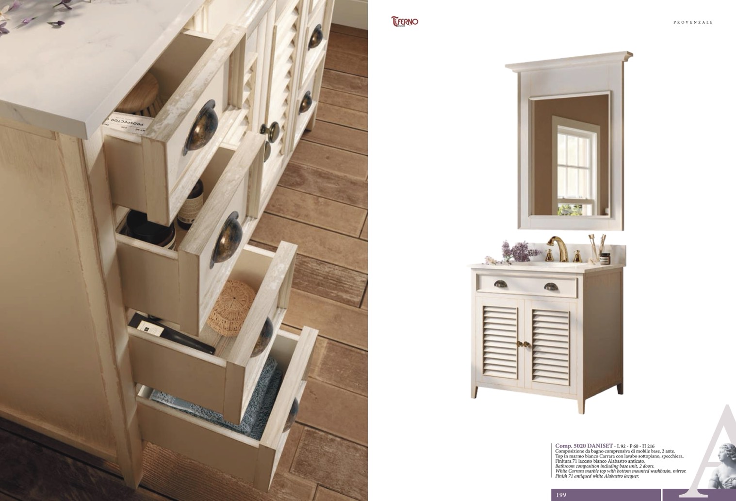 Finitura 71 laccato bianco Alabastro anticato.