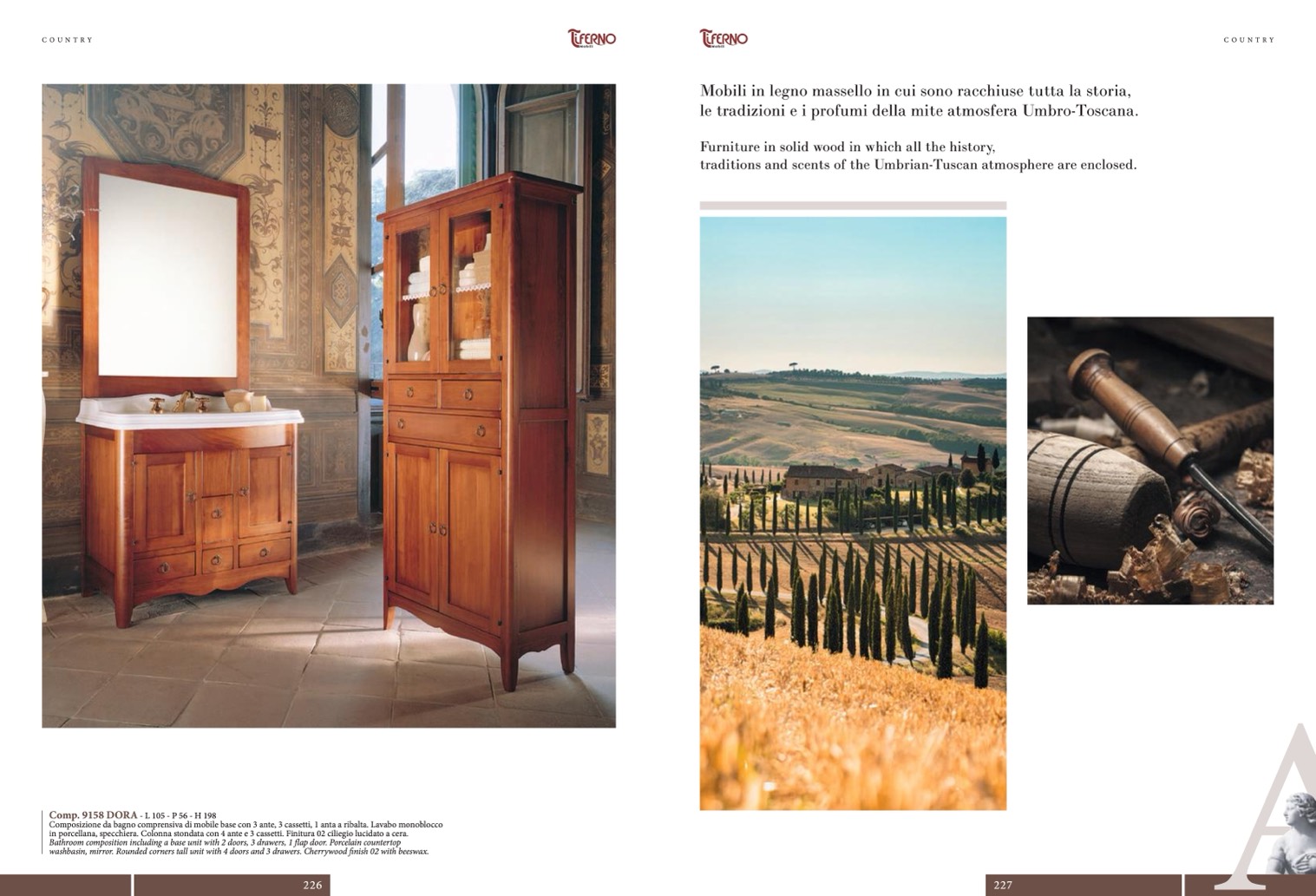 in porcellana, specchiera. Colonna stondata con 4 ante e 3 cassetti. Finitura 02 ciliegio lucidato a cera.