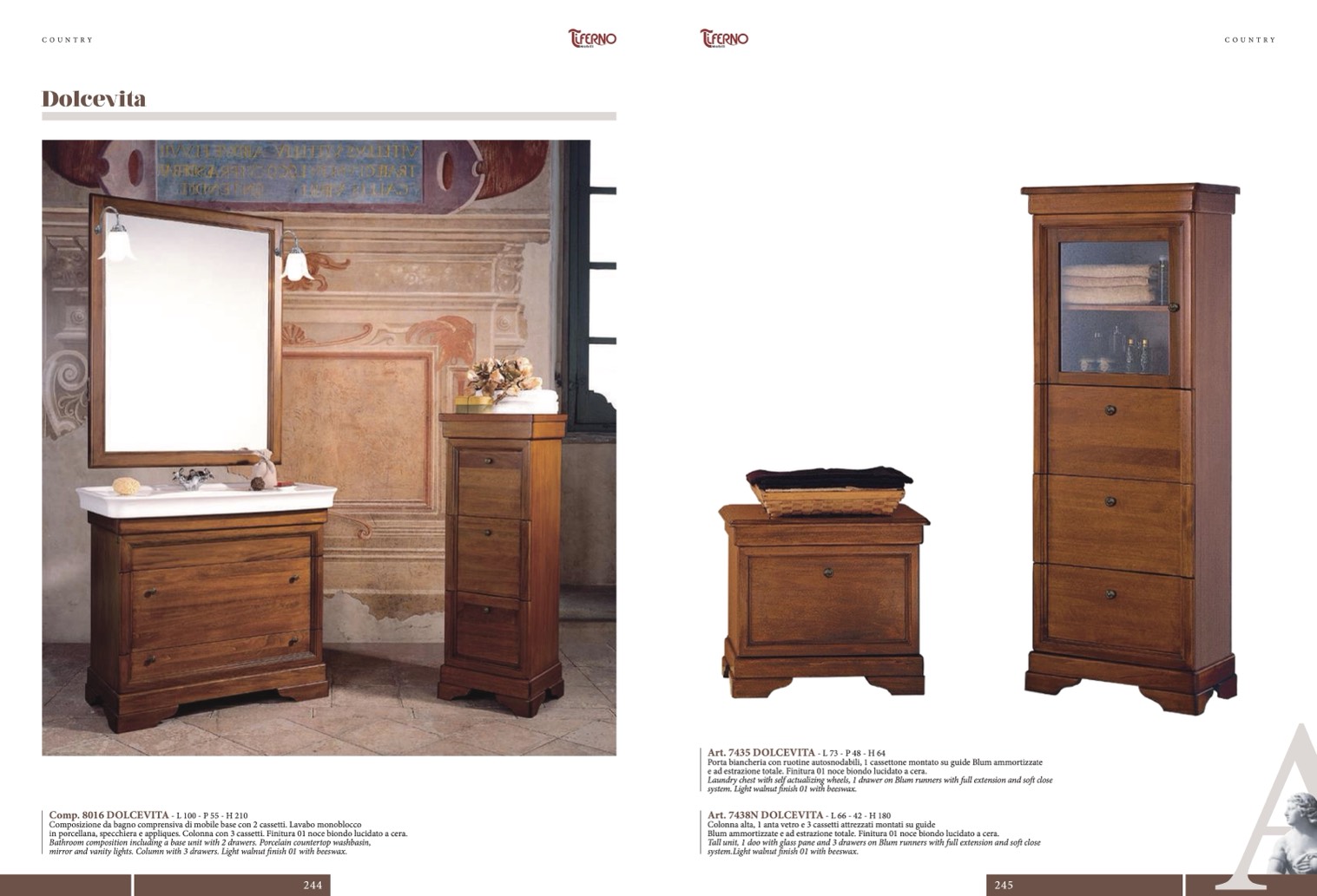 e ad estrazione totale. Finitura 01 noce biondo lucidato a cera.