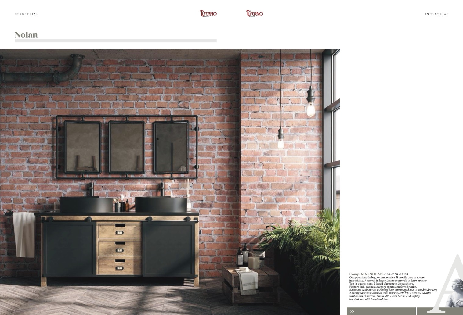 washbasins, 3 mirrors. Finish 58B - with patina and slightly