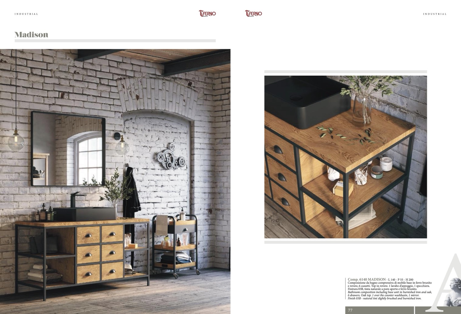 Finitura 03B, tinta naturale a poro aperto e ferro brunito.