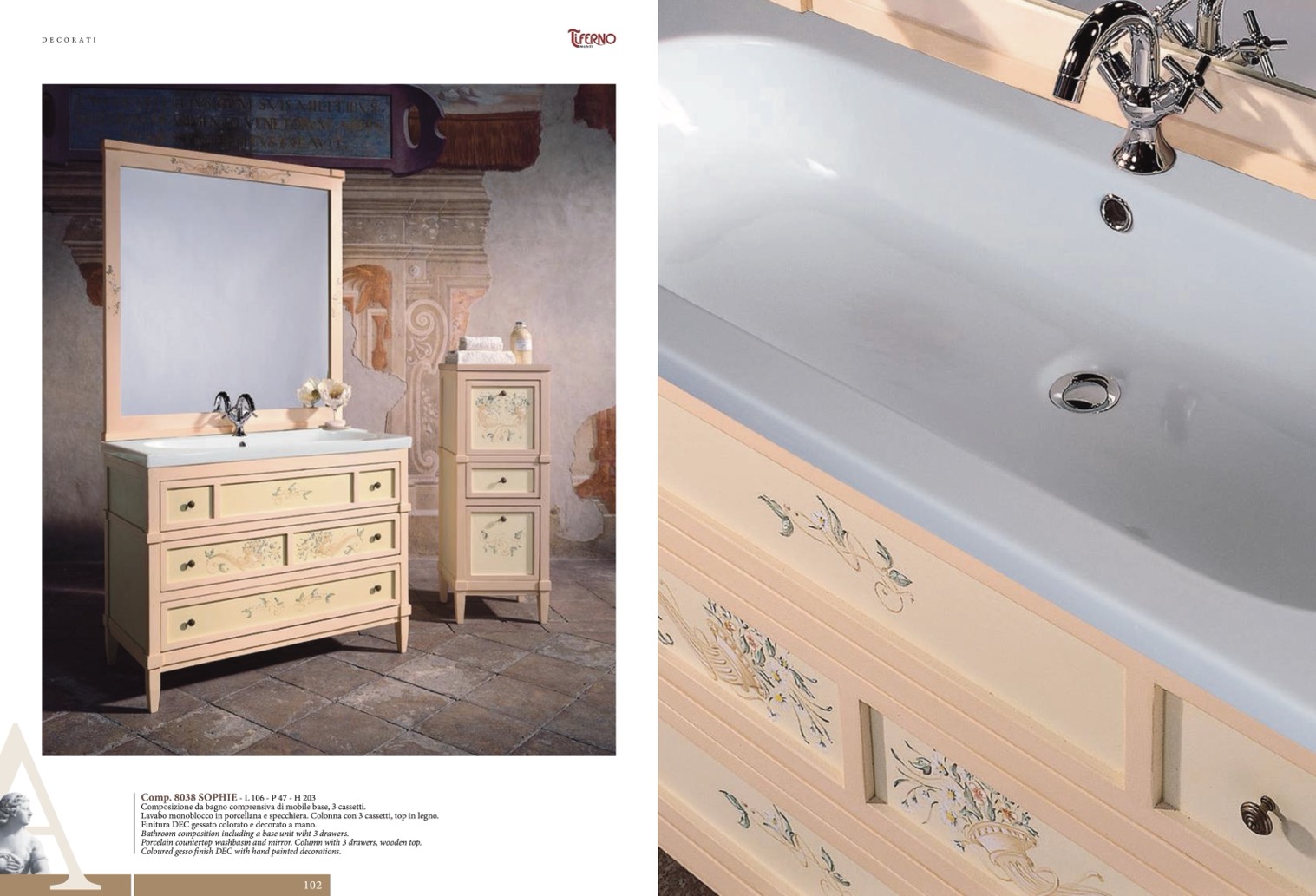 Finitura DEC gessato colorato e decorato a mano.