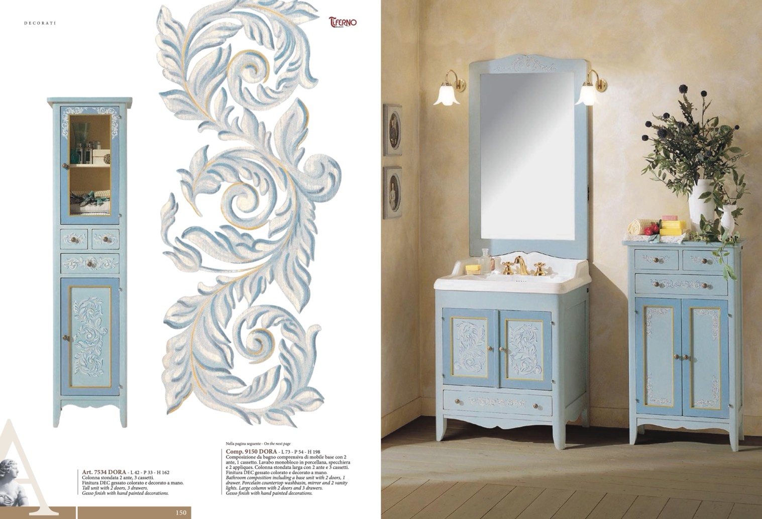 Finitura DEC gessato colorato e decorato a mano.