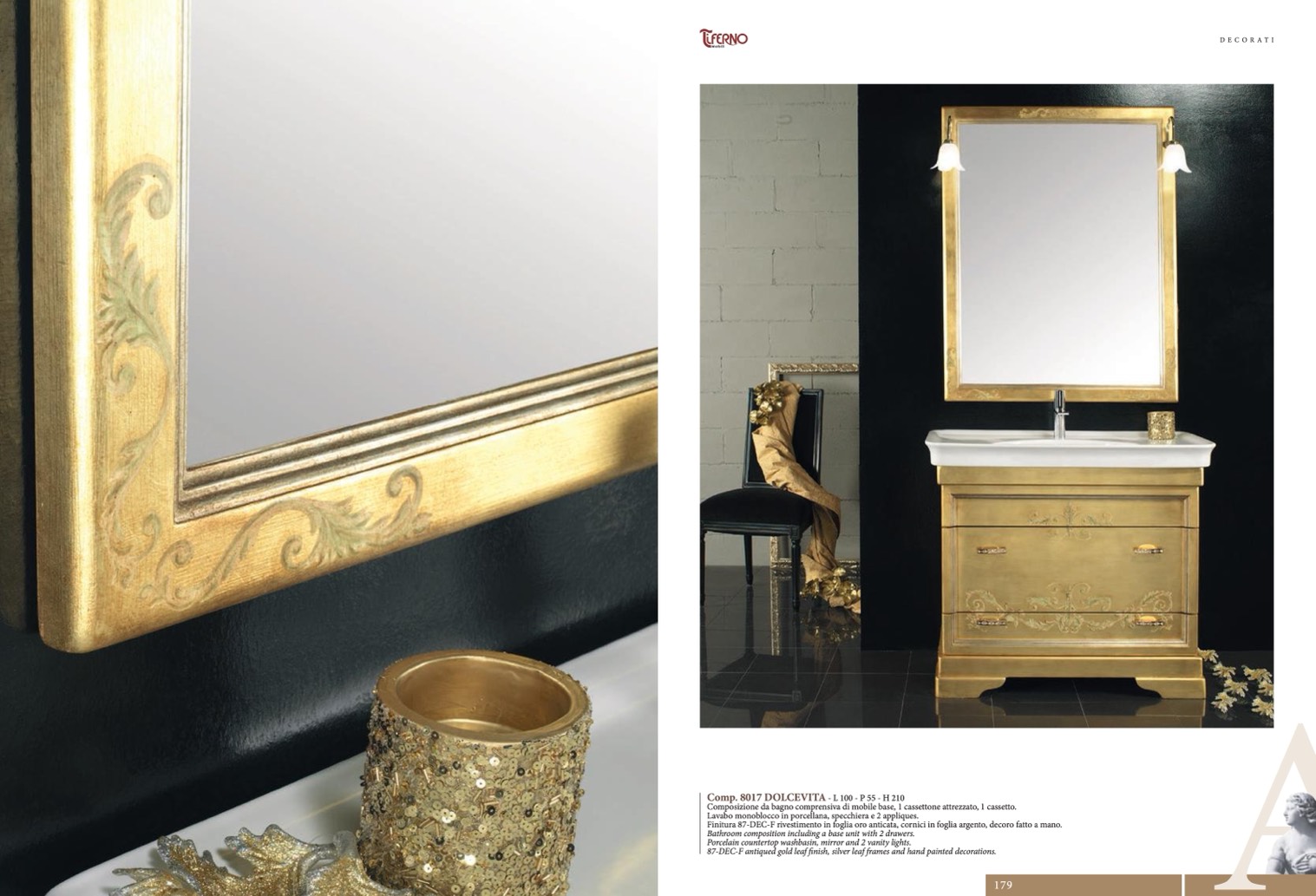 Finitura 87-DEC-F rivestimento in foglia oro anticata, cornici in foglia argento, decoro fatto a mano.