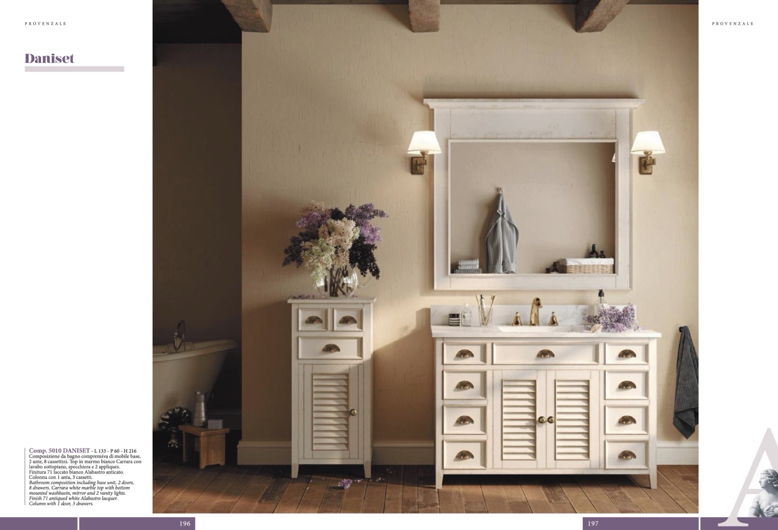 Finitura 71 laccato bianco Alabastro anticato.