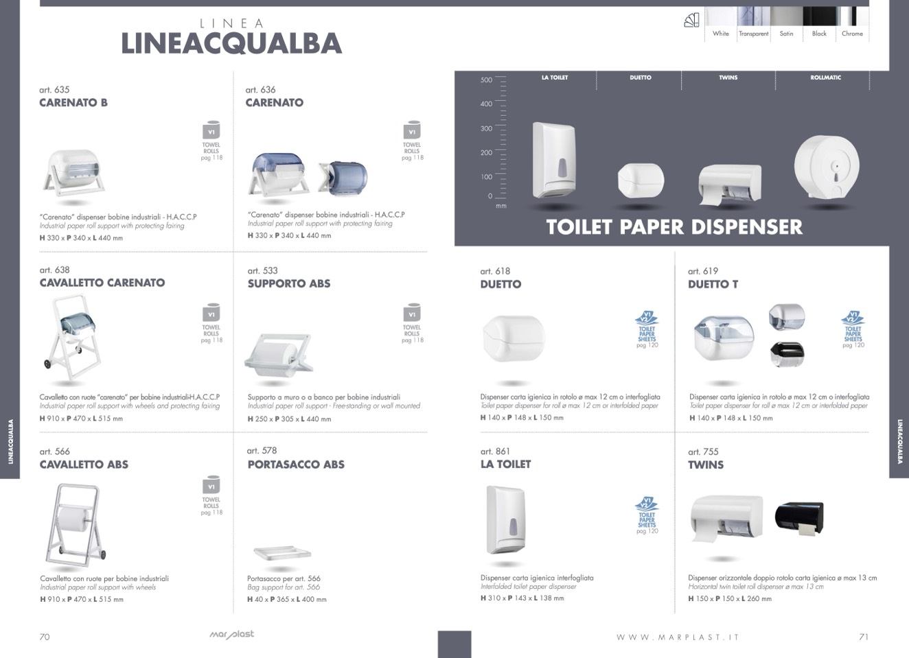 Dispenser carta igienica in rotolo ø max 12 cm o interfogliata