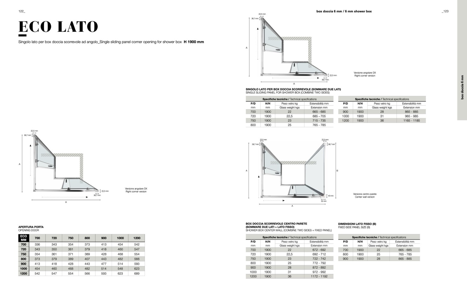 Singolo lato per box doccia scorrevole ad angolo_Single sliding panel corner opening for shower box H 1900 mm