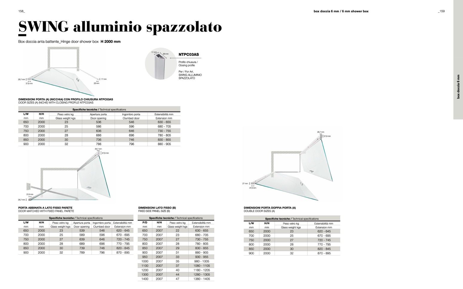 Box doccia anta battente_Hinge door shower box H 2000 mm