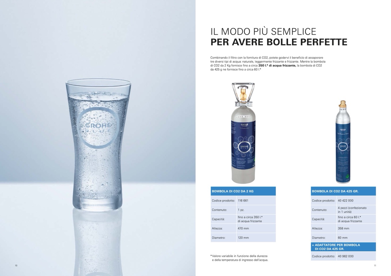 di CO2 da 2 Kg fornisce fino a circa 350 l.* di acqua frizzante, la bombola di CO2