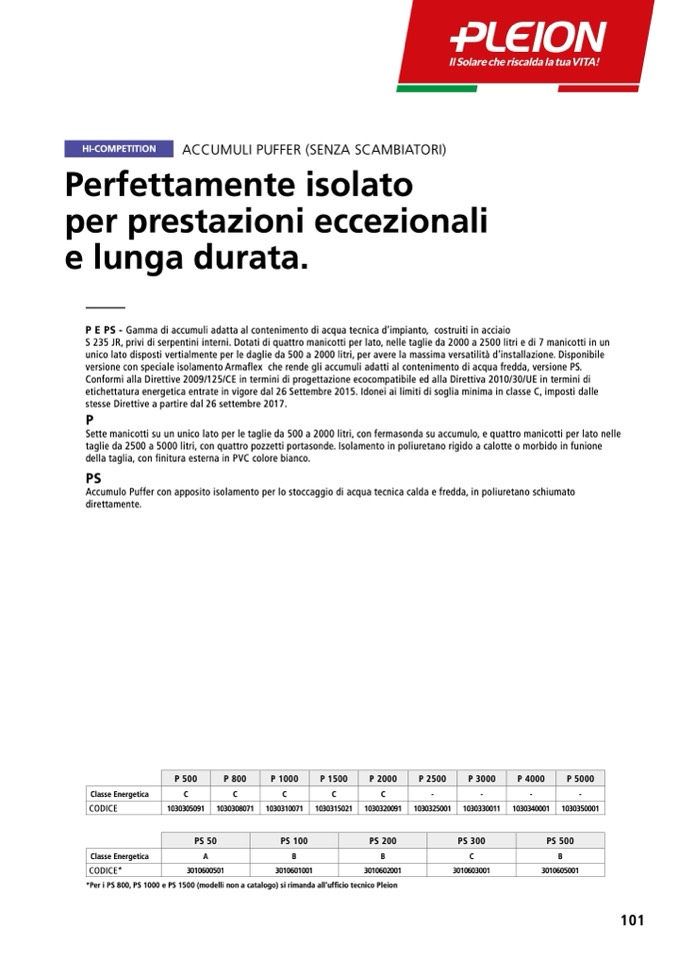 P E PS - Gamma di accumuli adatta al contenimento di acqua tecnica d’impianto, costruiti in acciaio