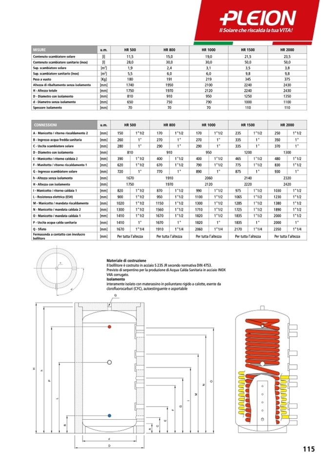 Previsto di serpentino per la produzione di Acqua Calda Sanitaria in acciaio INOX