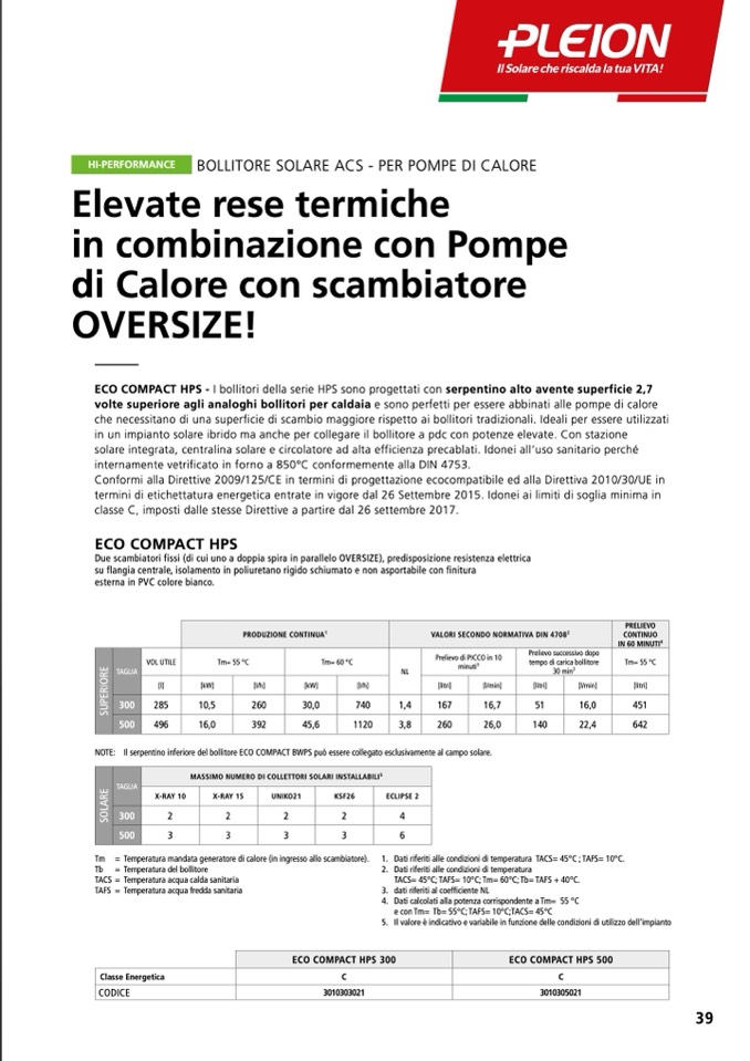 volte superiore agli analoghi bollitori per caldaia e sono perfetti per essere abbinati alle pompe di calore