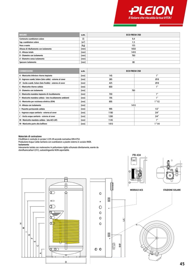 Il bolllitore è costruito in acciaio S 235 JR secondo normativa DIN 4753.