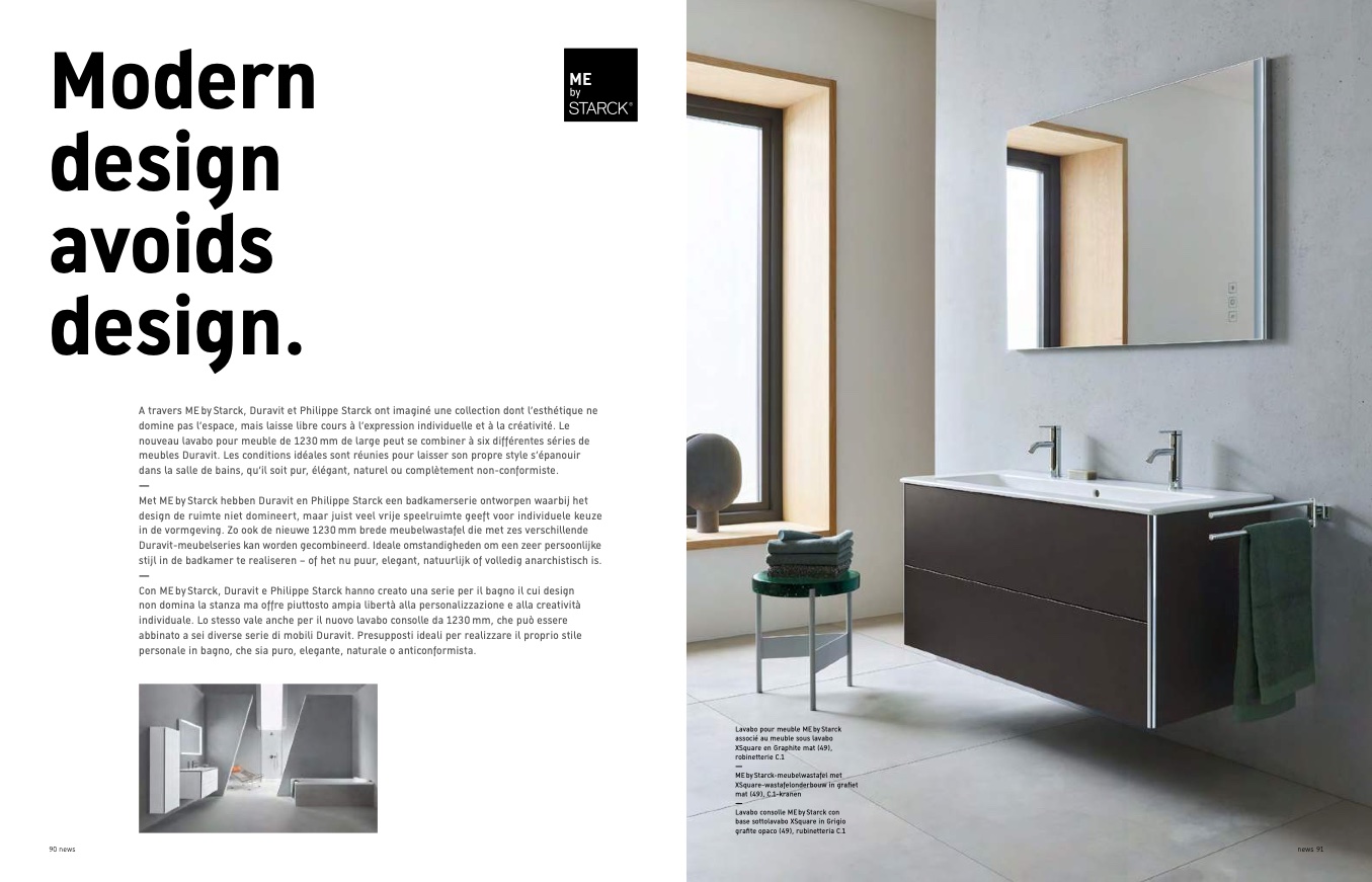 A travers ME by Starck, Duravit et Philippe Starck ont imaginé une collection dont l’esth