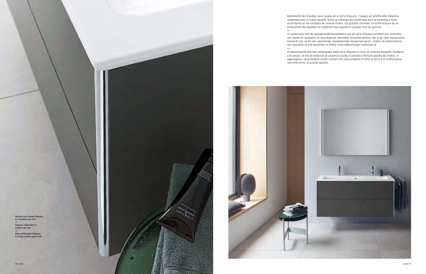 In combinatie met de wastafelonderbouwkasten van de serie XSquare ontstaat een ensemble
