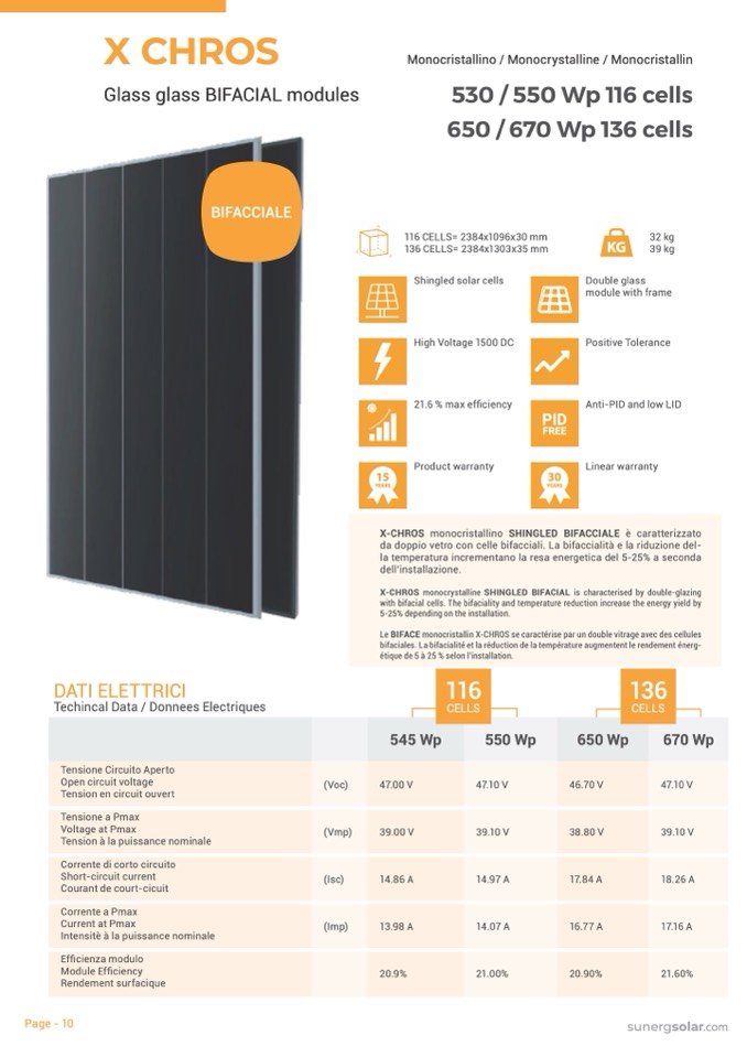 X-CHROS monocristallino SHINGLED BIFACCIALE è caratterizzato