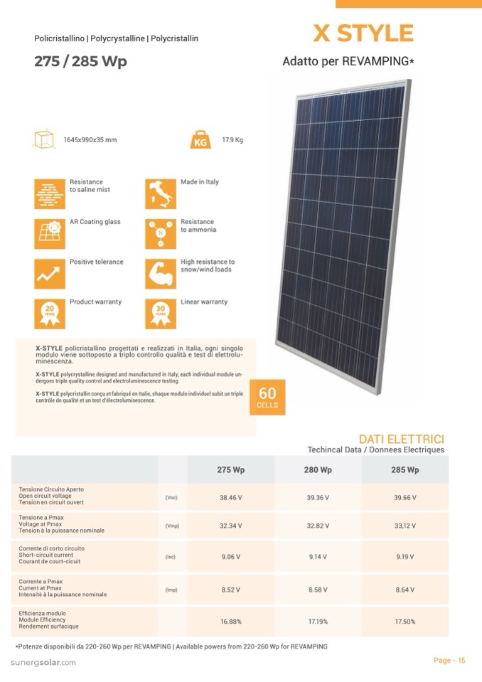 X-STYLE polycristallin conçu et fabriqué en Italie, chaque module individuel subit un triple