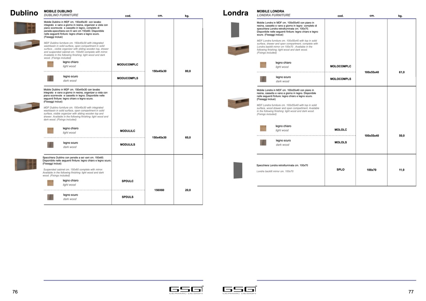 Available in the following finishing: light wood and dark