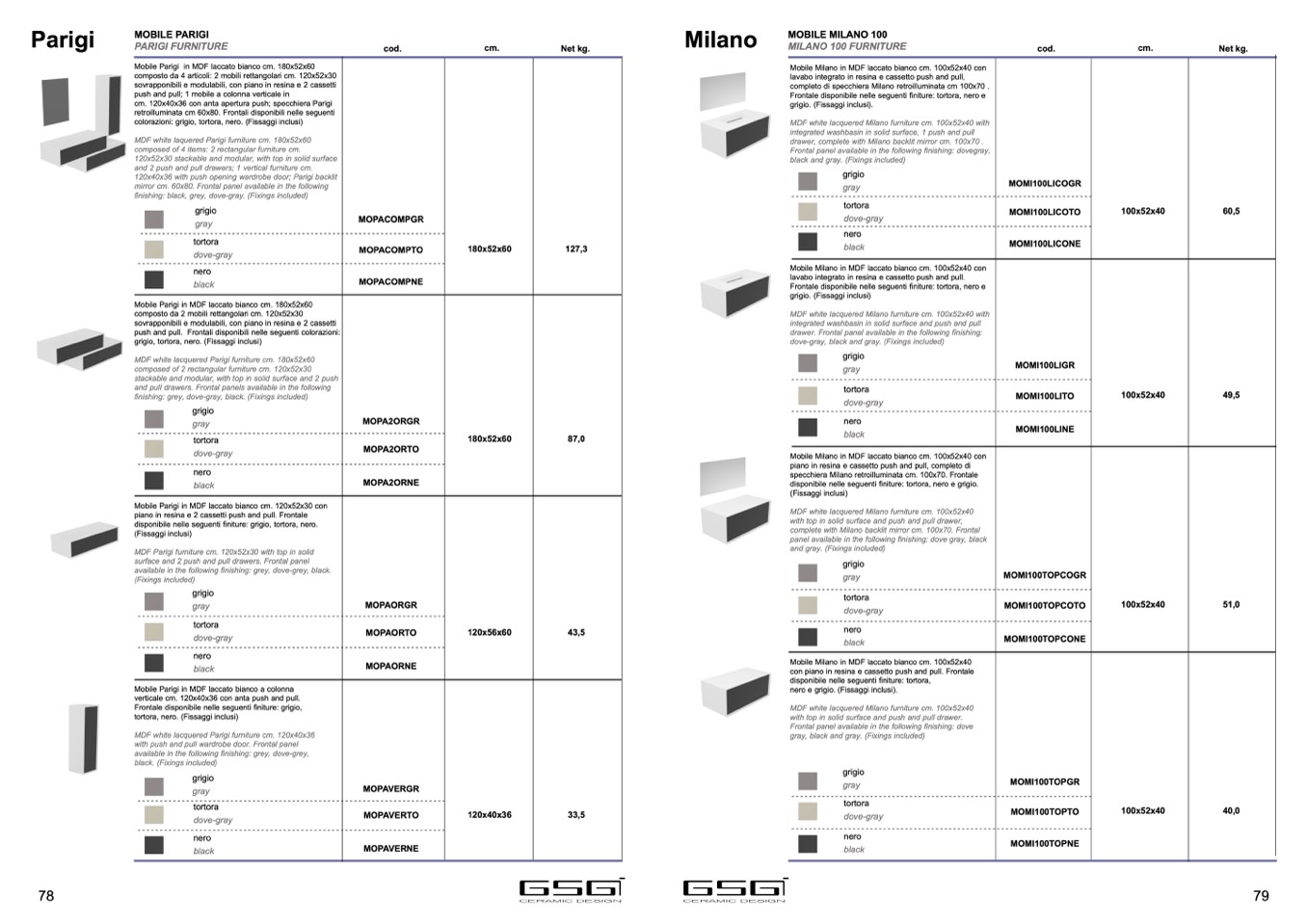 cm. 120x40x36 con anta apertura push; specchiera Parigi
