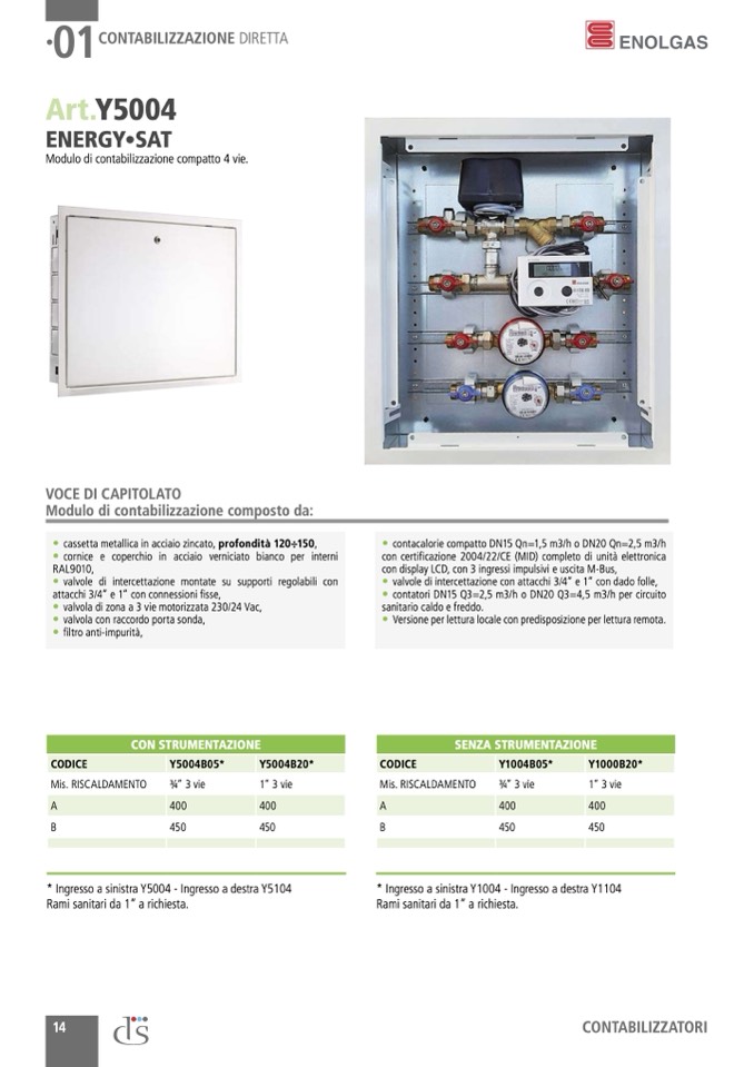 • contacalorie compatto DN15 Qn=1,5 m3/h o DN20 Qn=2,5 m3/h