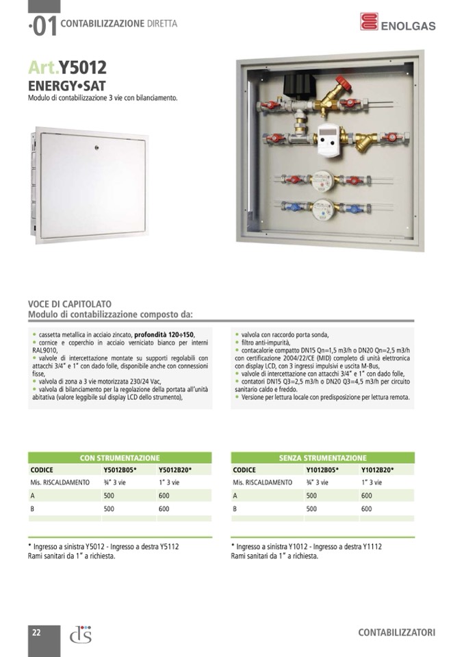 • contacalorie compatto DN15 Qn=1,5 m3/h o DN20 Qn=2,5 m3/h
