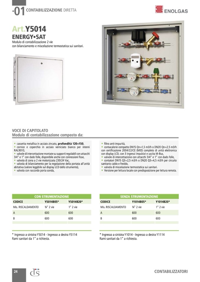 • contacalorie compatto DN15 Qn=1,5 m3/h o DN20 Qn=2,5 m3/h