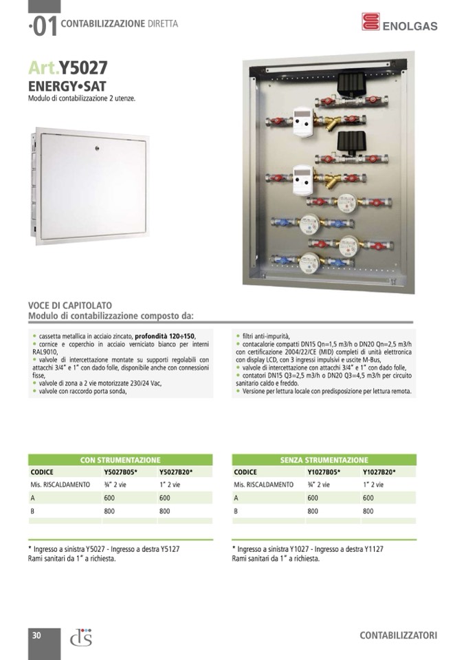 • contacalorie compatti DN15 Qn=1,5 m3/h o DN20 Qn=2,5 m3/h