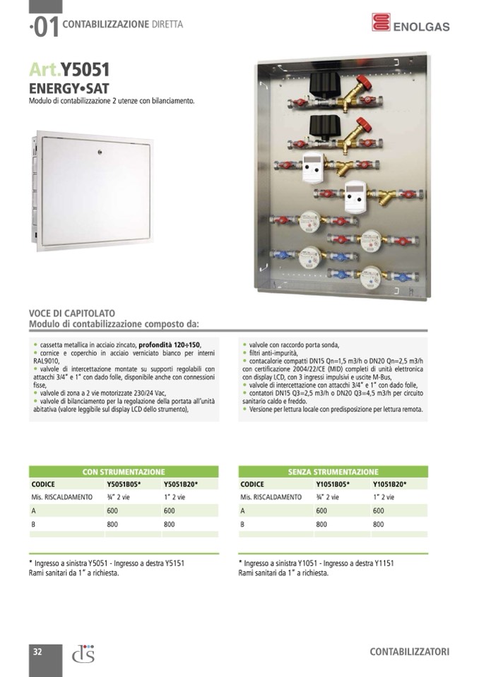 • contacalorie compatti DN15 Qn=1,5 m3/h o DN20 Qn=2,5 m3/h