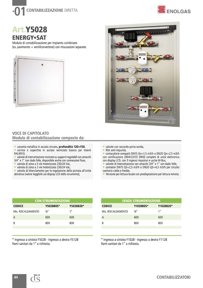 • contacalorie compatti DN15 Qn=1,5 m3/h o DN20 Qn=2,5 m3/h