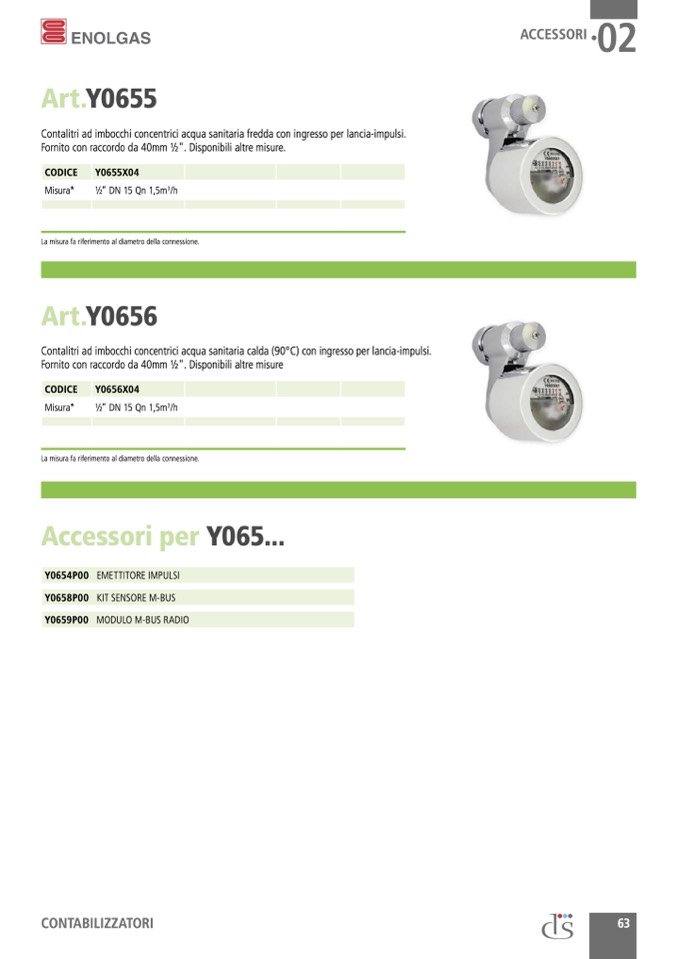 Contalitri ad imbocchi concentrici acqua sanitaria fredda con ingresso per lancia-impulsi.