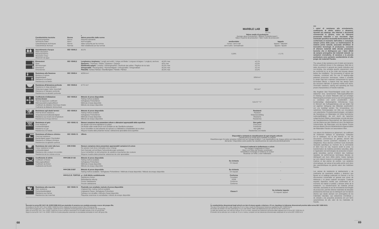 Secondo la norma EN 14411 All. G/ISO13006 All.G per piastrelle di ceramica non smaltate pressate a secco del gruppo Bla.