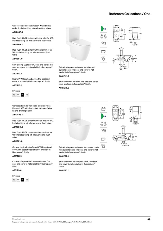 Replace (..) in the product reference with the code of the chosen finish: 00 White, S0 Supraglaze®, 62 Matt White, 08 Matt Blac
