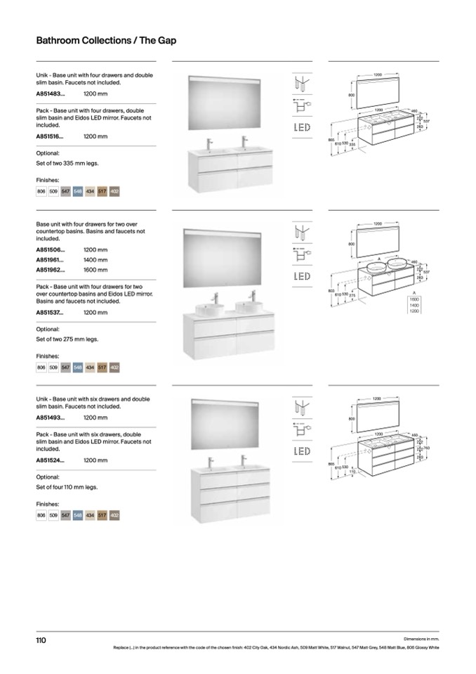 Replace (...) in the product reference with the code of the chosen finish: 402 City Oak, 434 Nordic Ash, 509 Matt White, 517 Walnut, 547 Matt Grey, 548 Matt Blue, 806 Glossy White