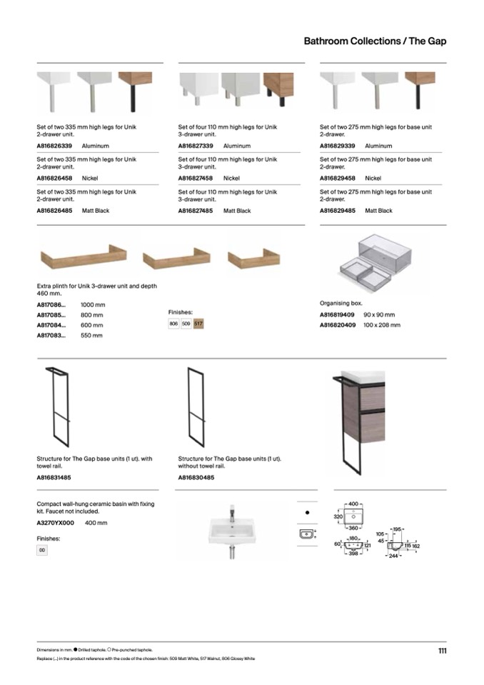 Replace (...) in the product reference with the code of the chosen finish: 509 Matt White, 517 Walnut, 806 Glossy Whit