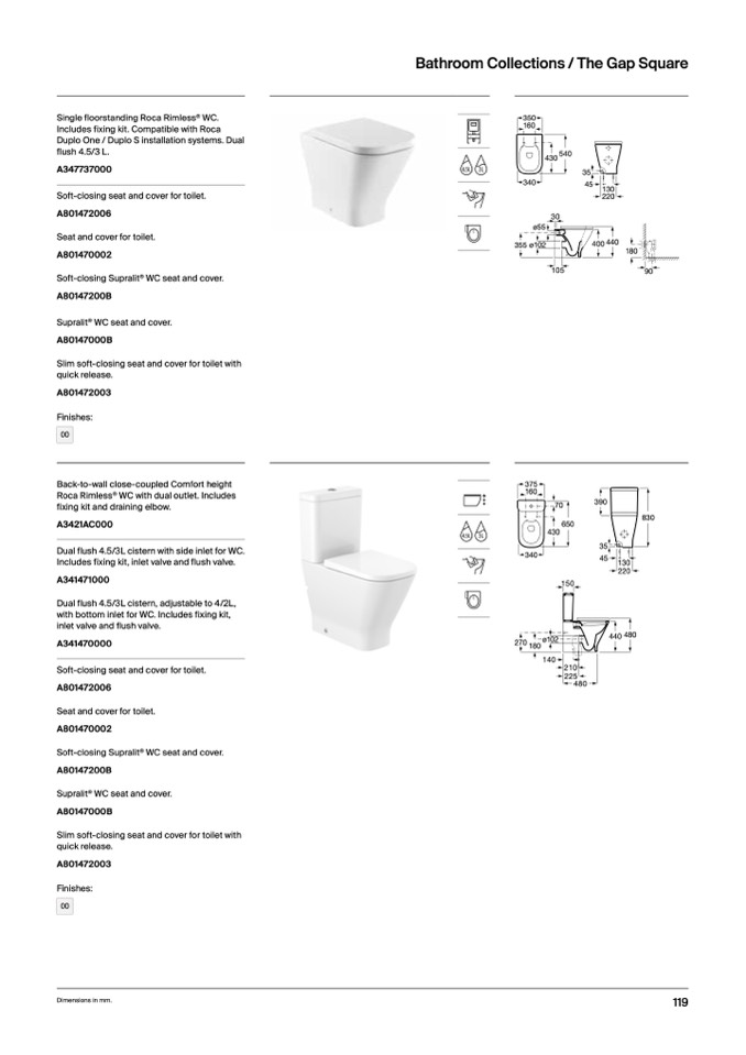 Roca Rimless® WC with dual outlet. Include
